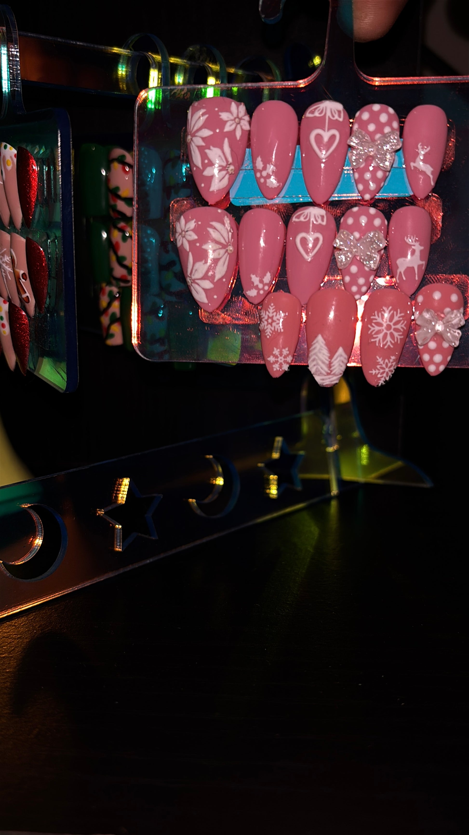 Sweet, soft, and totally cyber-doll coded. This pink holiday set mixes hearts, bows, and snowflakes for the babes who sleigh in pastels. Perfect for a cute Christmas moment with major Y2K energy.