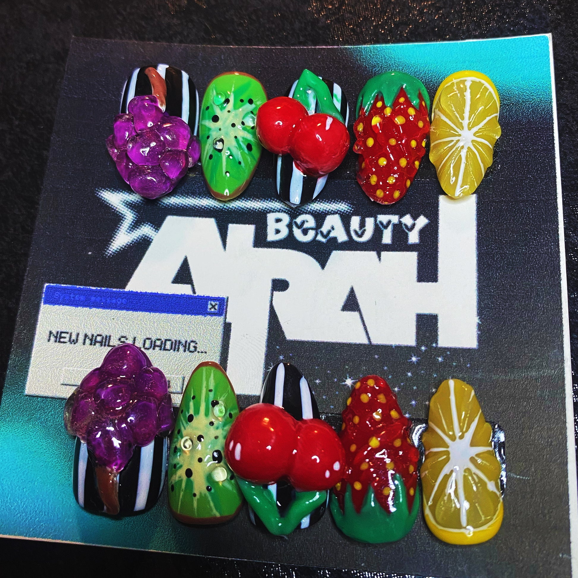 - Application kit (nail file, glue, sticky tabs, wooden stick, alcohol pad)